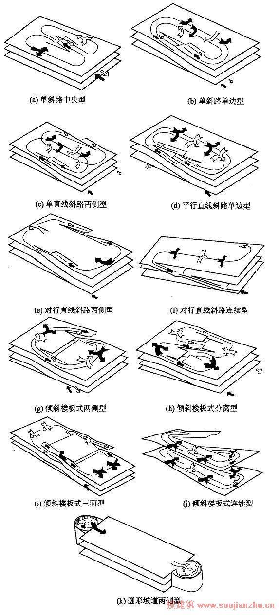 附图2 自走式地上停车楼和(或)地下停车库的内部交通组织方式