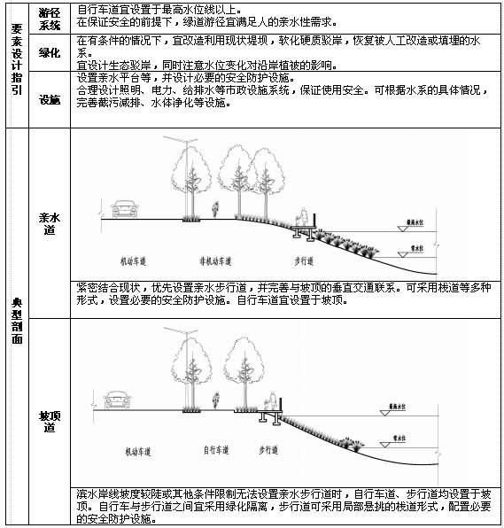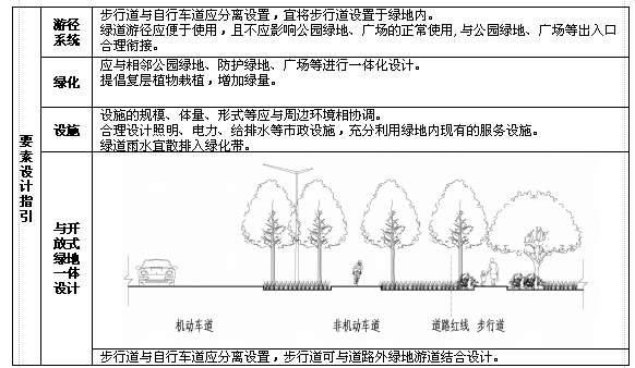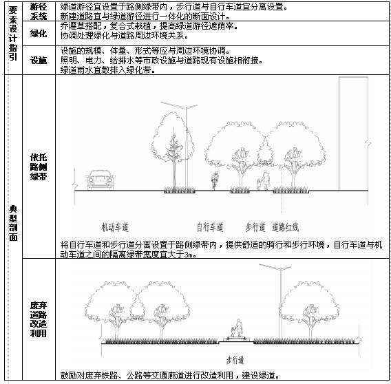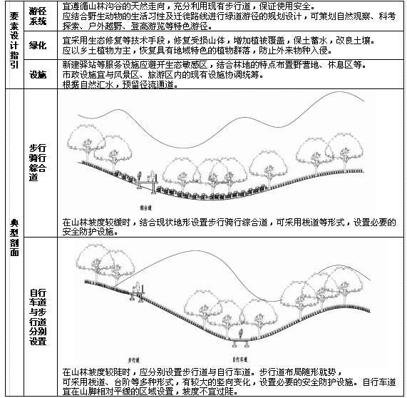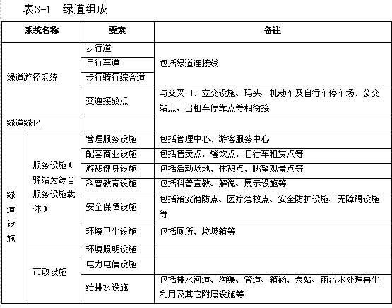3.2.1 绿道包括游径系统、绿化和设施。(详见表3-1)