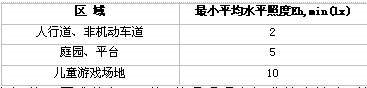 (2)有夜间使用需求的郊野型绿道照明照度标准值应符合《城市道路照明设计标准》(CJJ45-2006)表3.5.1的规定,即“人行道路人流量小的道路路面平均照度5Lx,路面最小照度1Lx,最小垂直照度1Lx”。