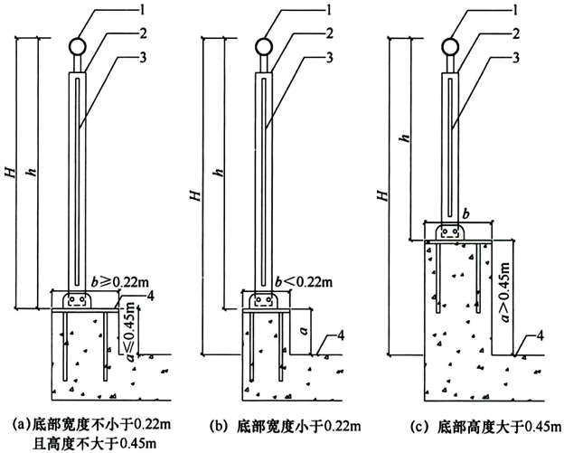 图3 可踏面、防护栏杆高度和防护高度示意 1-扶手;2-立柱;3-栏板;4-可踏面;a-底部高度;b-底部宽度;h-防护栏杆高度;H-防护栏杆防护高度