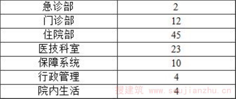 第十二条 传染病医院中急诊部、门诊部、住院部、医技科室、保障系统、行政管理和院内生活用房等七项设施的床均建筑面积指标应符合表1的规定。