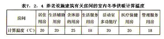 7.2.4 养老设施建筑有关房间的室内冬季供暖计算温度不应低于表7.2.4的规定。