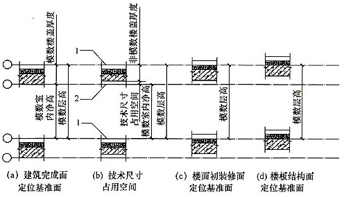1—楼面模数定位基准面;2—顶棚模数定位基准面