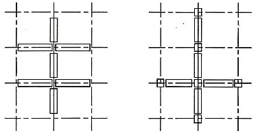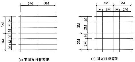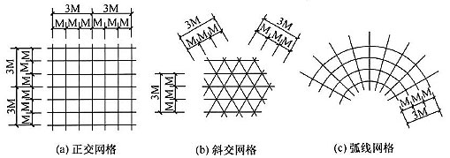 2 在同一建筑中,可采用多个模数网格,各模数网格间可重叠、交叉、中断,且相互可不平行,原点可相互独立;