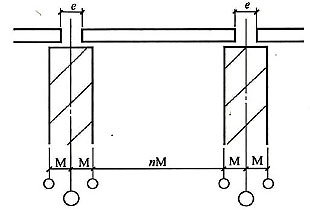 图4.4.1-5 单线和双线网格混合使用时的中心线与界面定位法