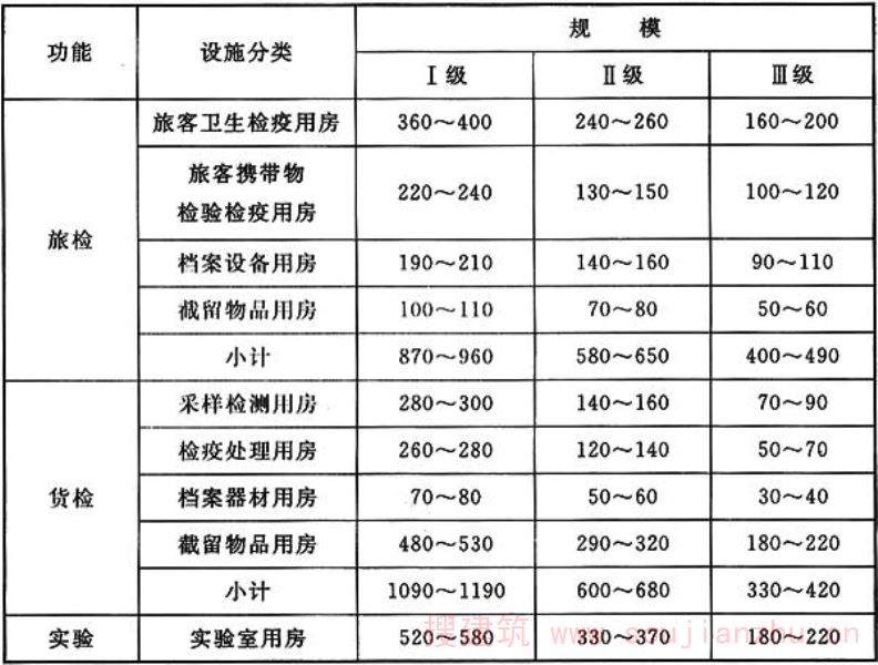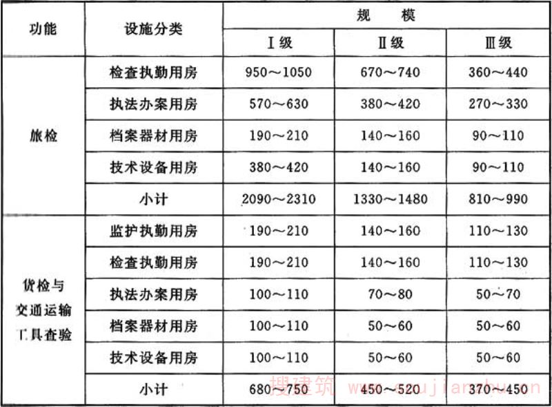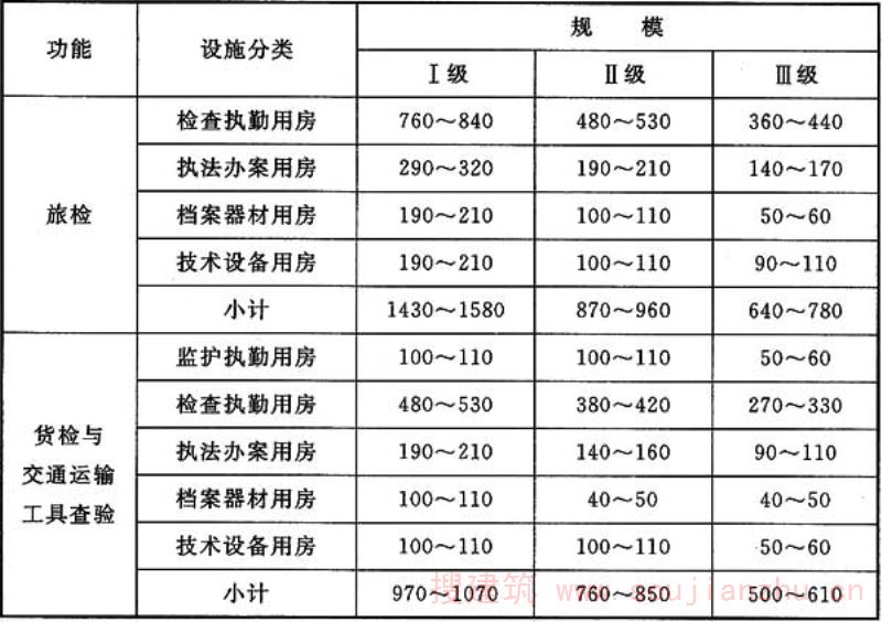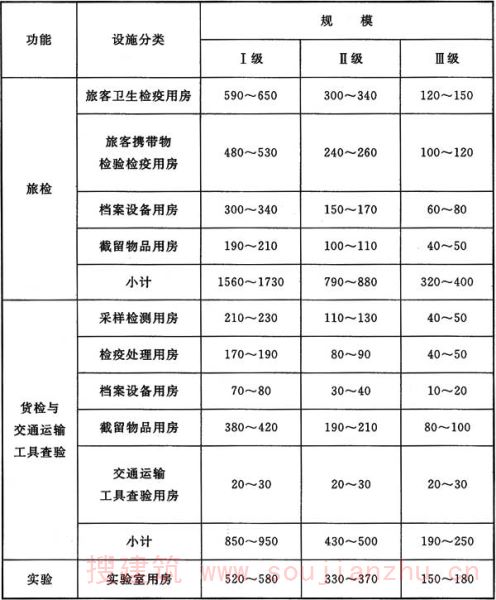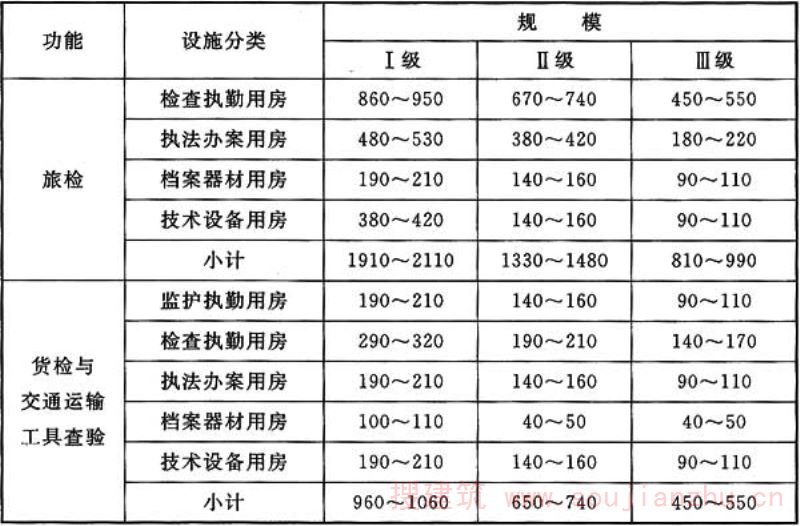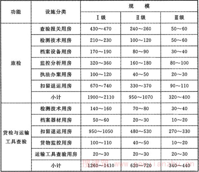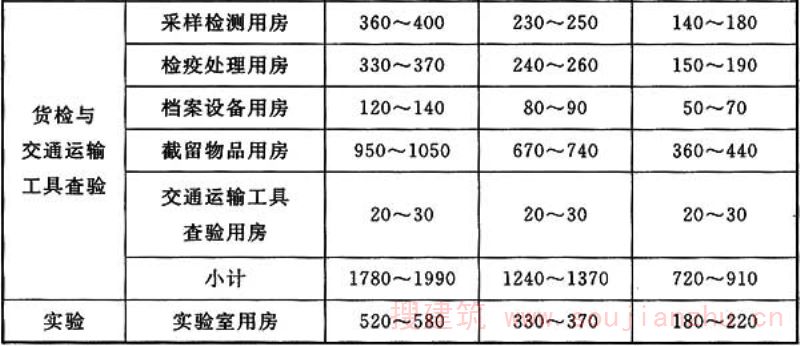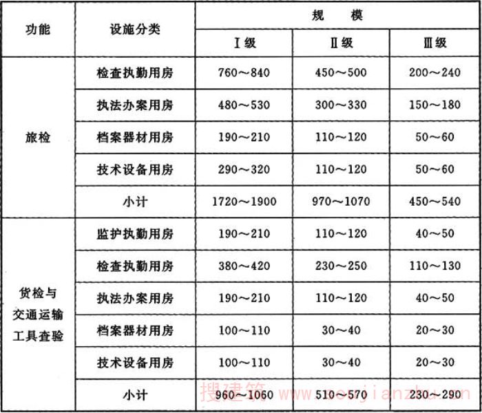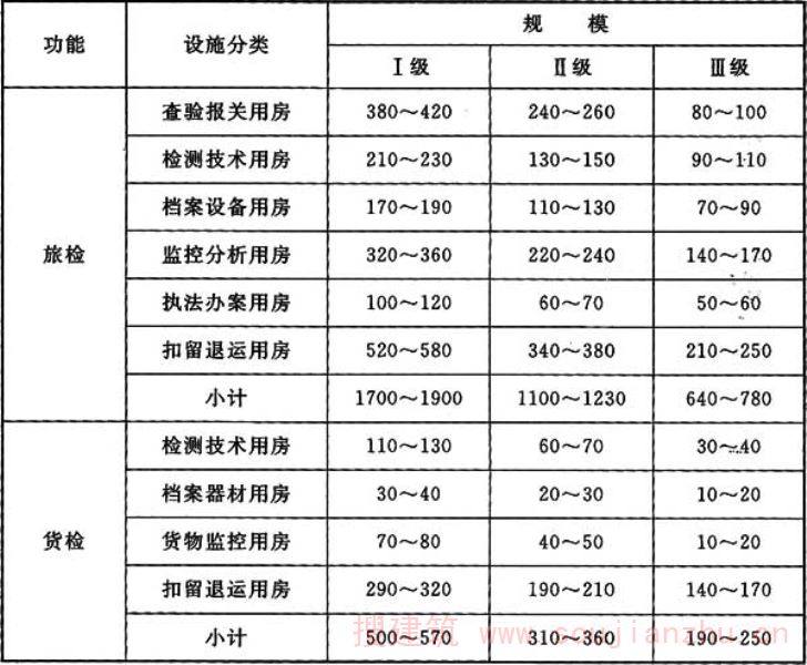 注:各类用房面积司根据口岸实际情况,在旅检、货检与交通运输工具查验面积指标总体范围内调配。