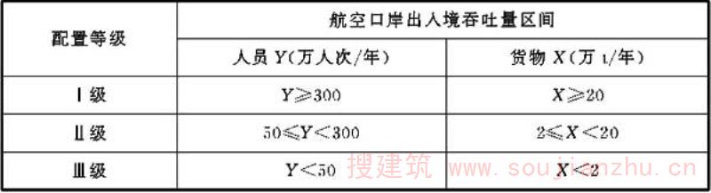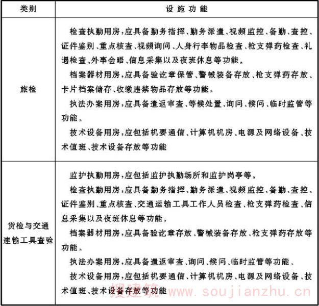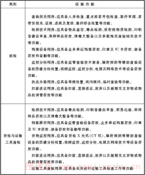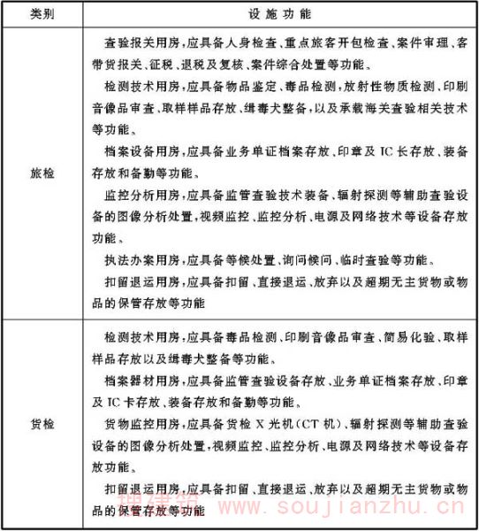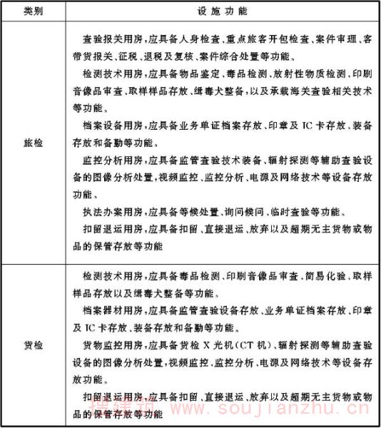 海关各类业务技术设施如条文中各表所示,表中罗列的设施山海关相关规范中要求设置的设施,各口岸根据实际情况,可调整各业务技术用房功能,在总面积控制前提下调剂各类用房面积。