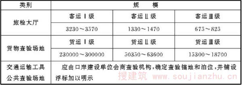 表1 水运口岸查验基础设施规模分类