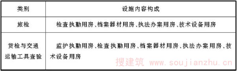 第十三条 水运口岸边检业务技术设施内容构成宜符合表5的规定。