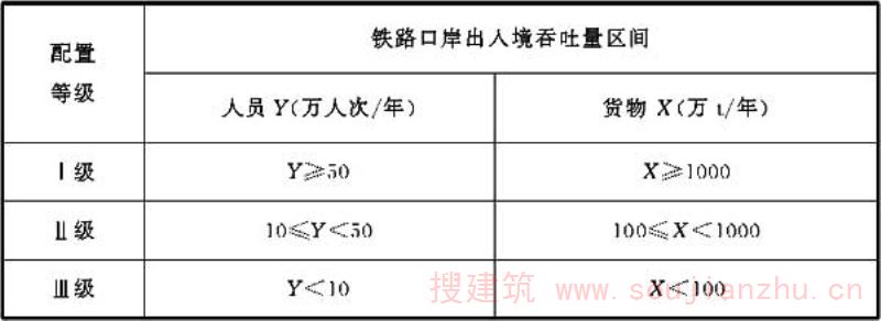 按照口岸设计的最高年出入境人员、货物、车辆等主要业务吞吐量指标,将口岸作业区分别划分为三个等级,当某个指标到达相应的区间,则将该口岸定为该指标的对应级别。例如,某口岸年货物吞吐量300万t,人员吞吐量5万人次,车辆50000辆次,则将其定为货运Ⅰ级,客运Ⅲ级,车辆Ⅱ级。