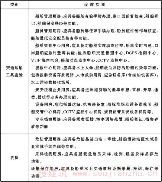 第九条 本条对水运口岸查验基础设施内容构成进行了分类。