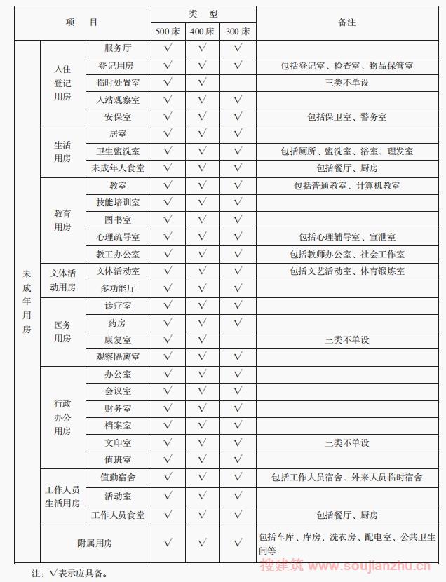 附录一 流浪未成年人救助保护中心各类用房详表