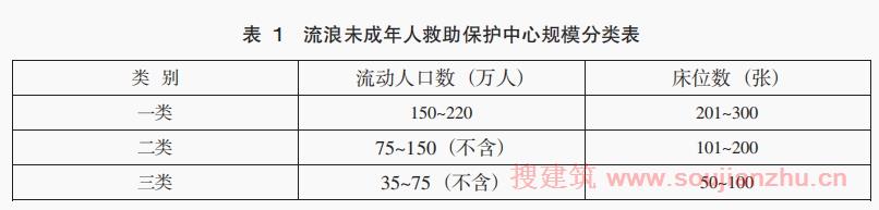 第十一条 流浪未成年人救助保护中心的建设规模分类及其床位数划分应符合表1规定。