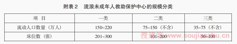 六、综合上述分析,按城市辖区内流动人口数量,可将流浪未成年人救助保护中心的规模划分如下(见附表2):