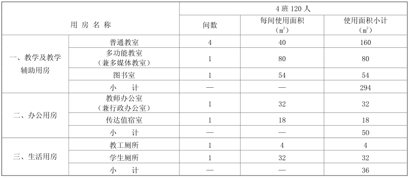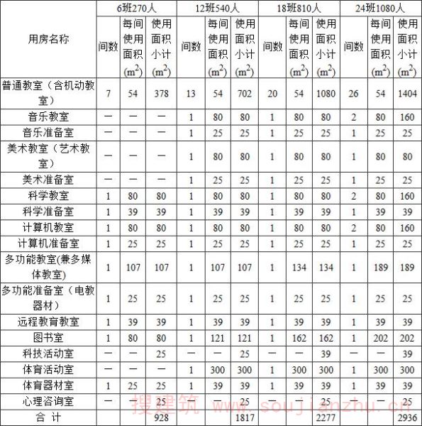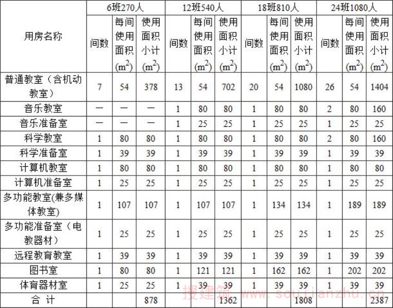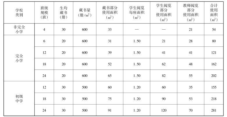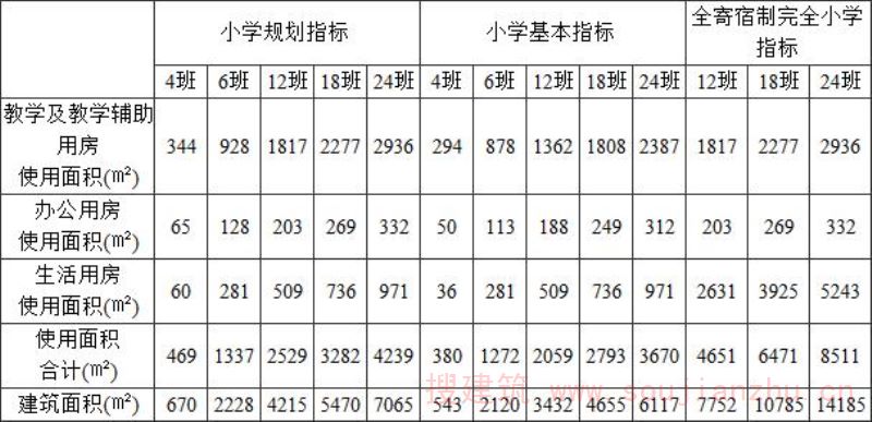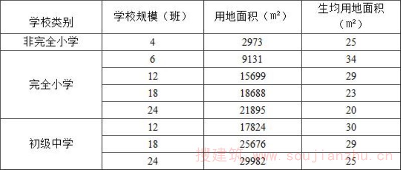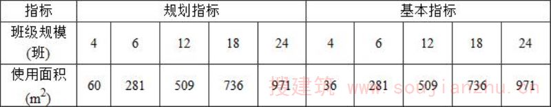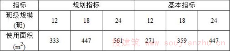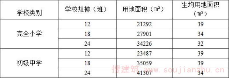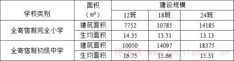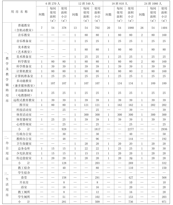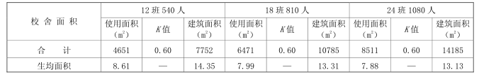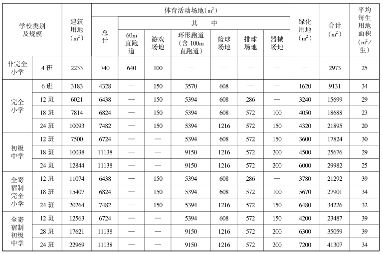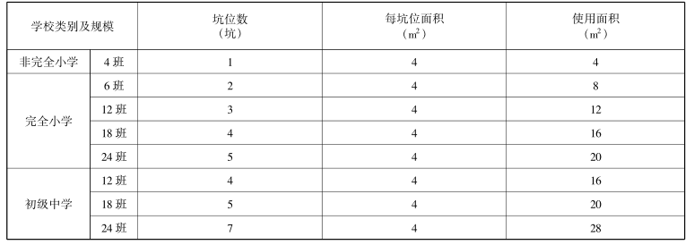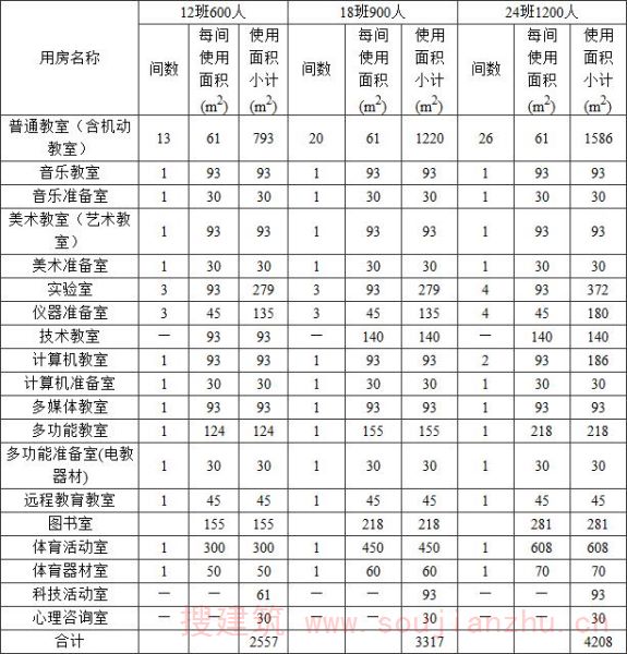 注:以上12班、18班、24班普通初级中学的使用面积未包括学生宿舍的使用面积。