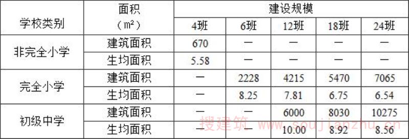 一、农村普通中小学校校舍建筑面积指标分规划指标和基本指标。新建学校应按规划指标进行校园总体规划,首期建设的校舍建筑面积不应低于基本指标的规定。