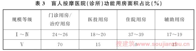 第二十五条 盲人按摩医院(诊所)房屋建筑各功能用房建筑面积所占总建筑面积比例宜符合表3的规定。