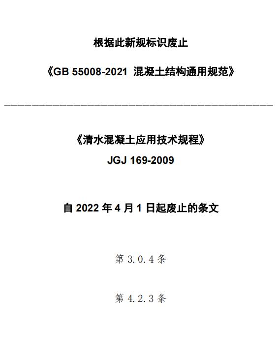 现批准《清水混疑土应用技术规程》为建筑工程行业标准,编号为JGJ 169-2009,自2009年6月1日起实施。其中,第3.0.4、4.2.3条为强制性条文,必须严格执行。
