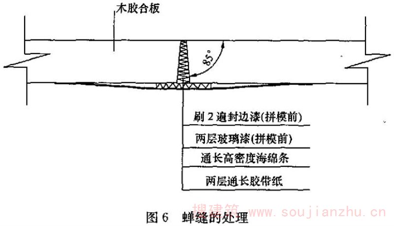 10.1.3 采用封边漆封边和保护垫圈是为了防止雨水等从胶合板面板的切口和侧面渗入,胶合板吸水翘曲变形,影响清水混凝土表面效果。