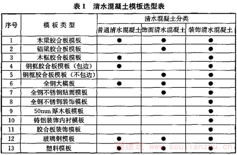 4.1.1 建筑设计应确定清水混凝土类型及应用范围。清水混凝土构件尺寸宜标准化和模数化。