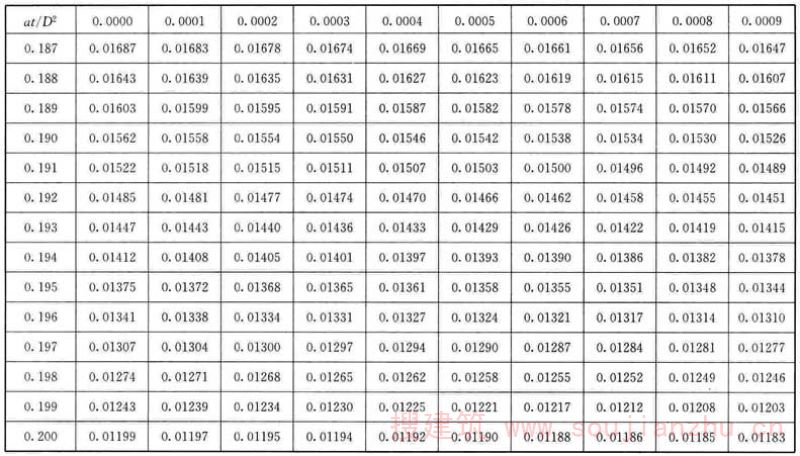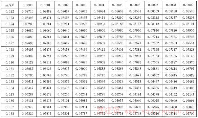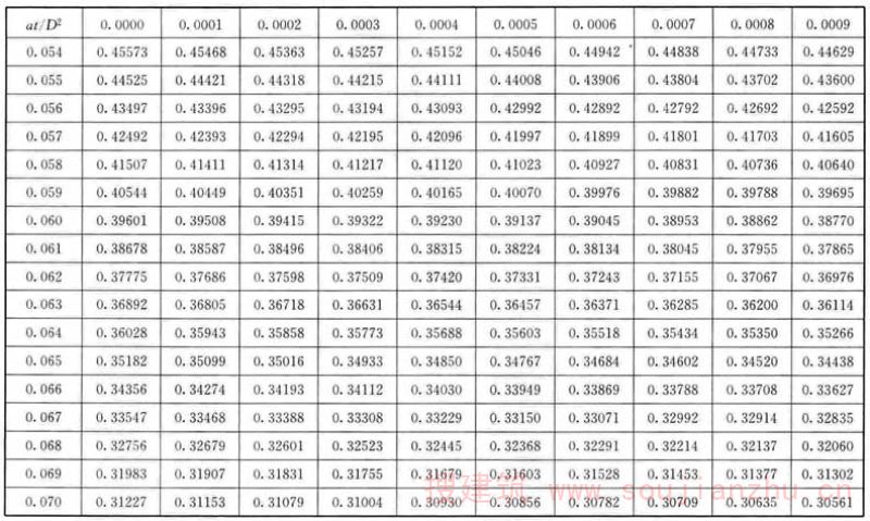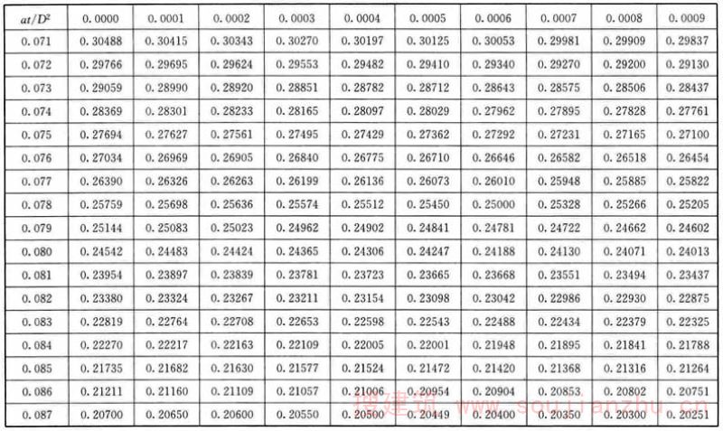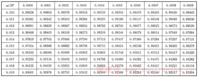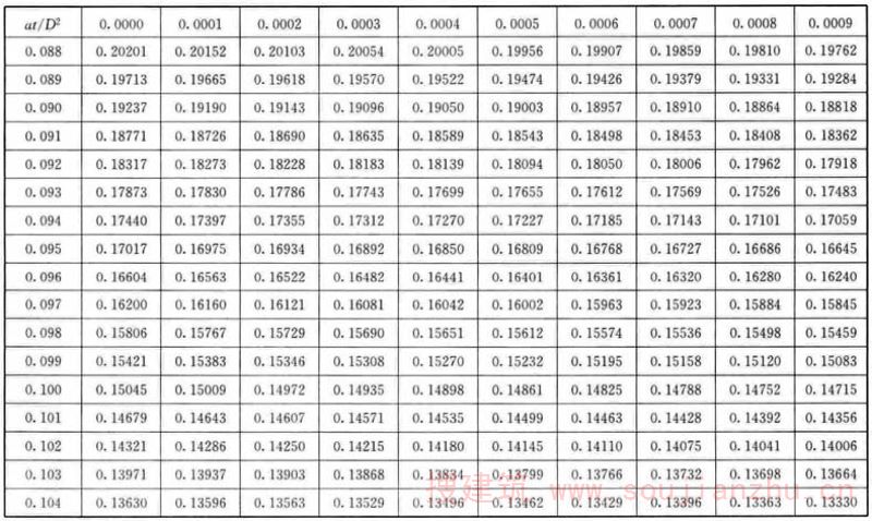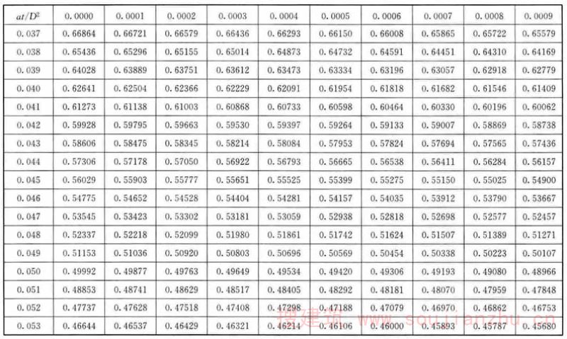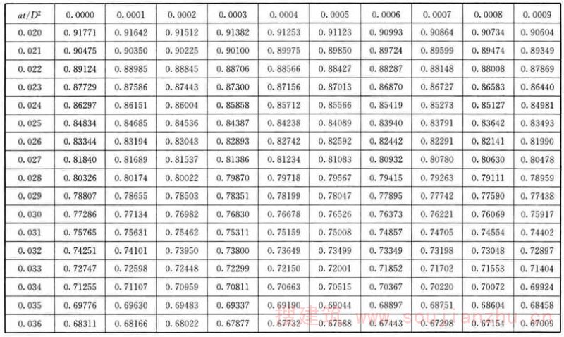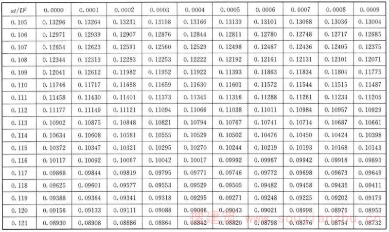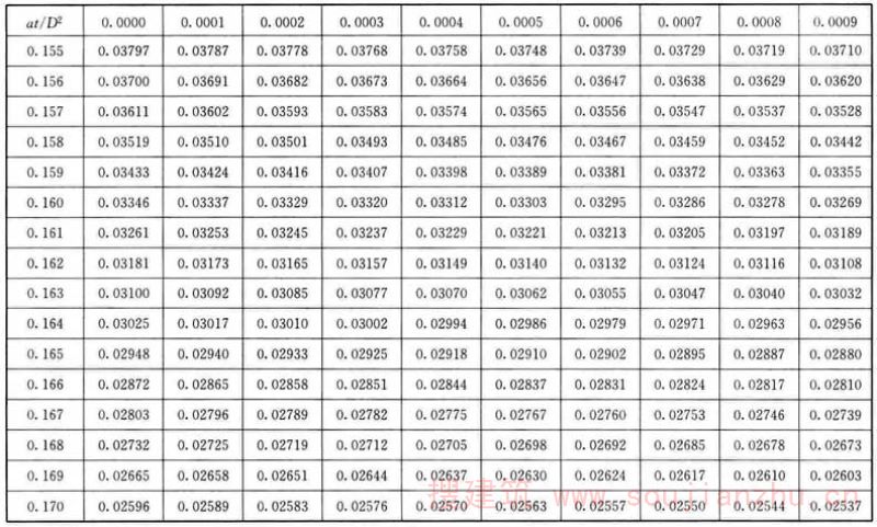 F.0.1 应根据各个时间的θ/θ 0 值,从表F中查找at/D 2 值。