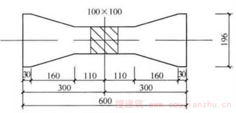 立方体试件或圆柱体试件上下表面中间承受均布压力劈裂破坏时,压力作用的竖向平面内产生近似均布的极限拉应力。