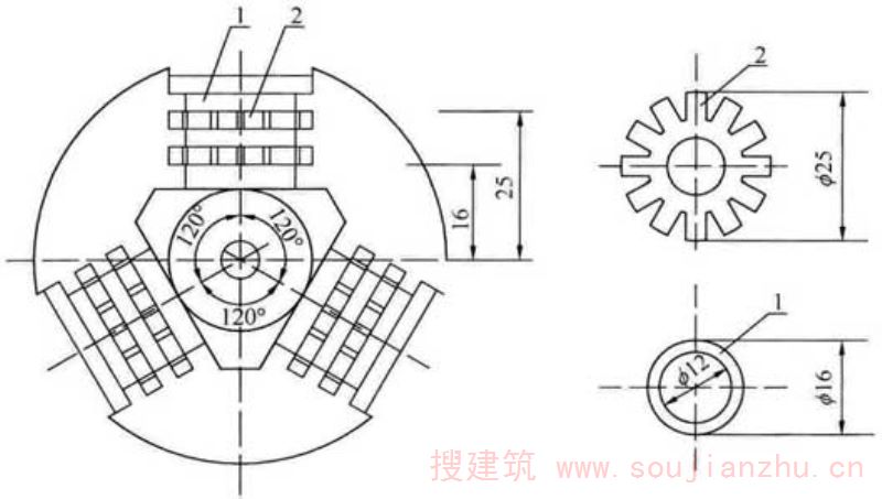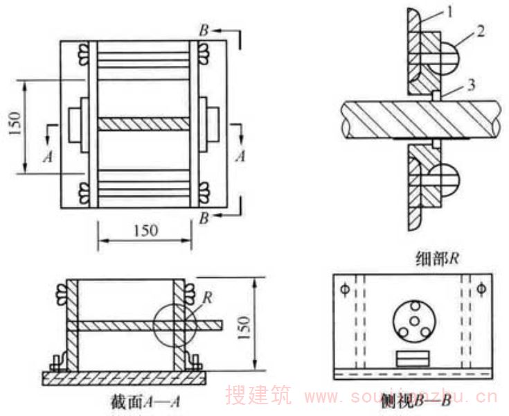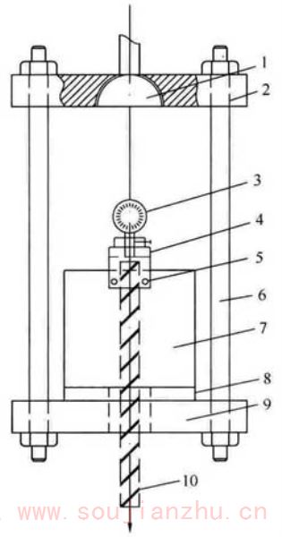 当采用千分表或位移传感器时,应将千分表或位移传感器固定在变形测量架上,试件的测量标距应为150mm,由标距定位杆定位,然后将变形测量架通过紧固螺钉固定。