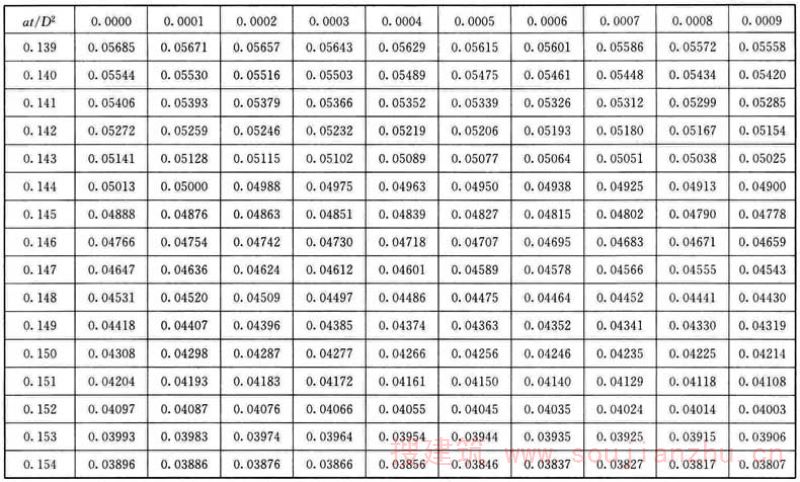 注:θ/θ 0 值为表中除第1行和第1列以外的数值,表中每一个θ/θ 0 值对应的第1列中数值与第1行中数值相加即为at/D 2 值。