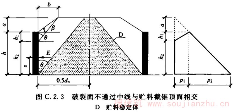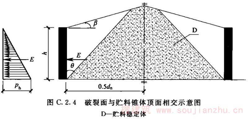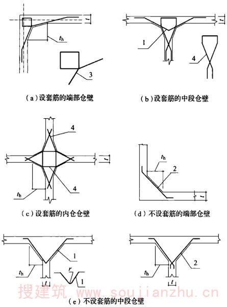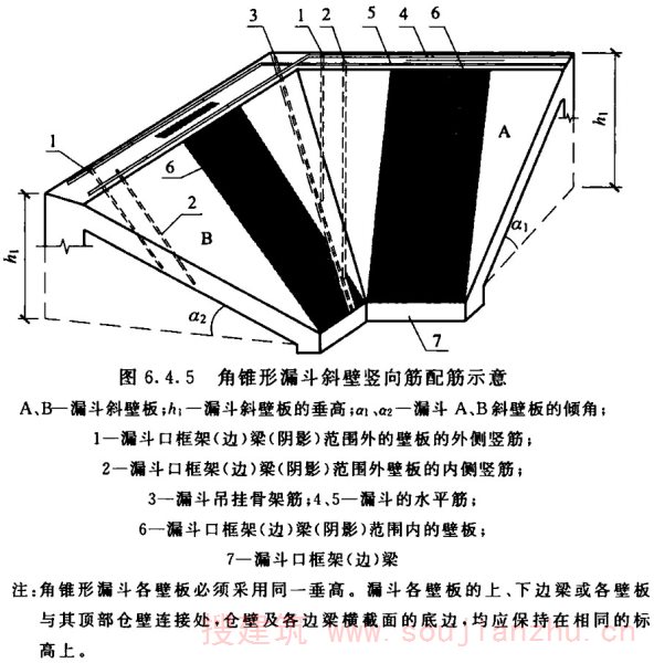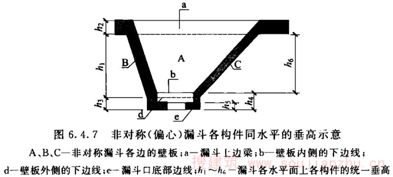 2)当漏斗壁的高度小于1/2跨长时,应按实际高度计算;