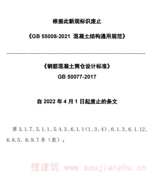 现批准《钢筋混凝土筒仓设计标准》为国家标准,编号为GB 50077-2017,自2018年8月1日起实施。其中,第3.1.4、3.1.5(1、2、3),3.1.7、5.1.1、5.4.3、6.1.1(1、3、4)、6.1.3、6.1.12、6.8.5、6.8.7条(款)为强制性条文,必须严格执行。原国家标准《钢筋混凝土筒仓设计规范》GB 50077-2003同时废止。