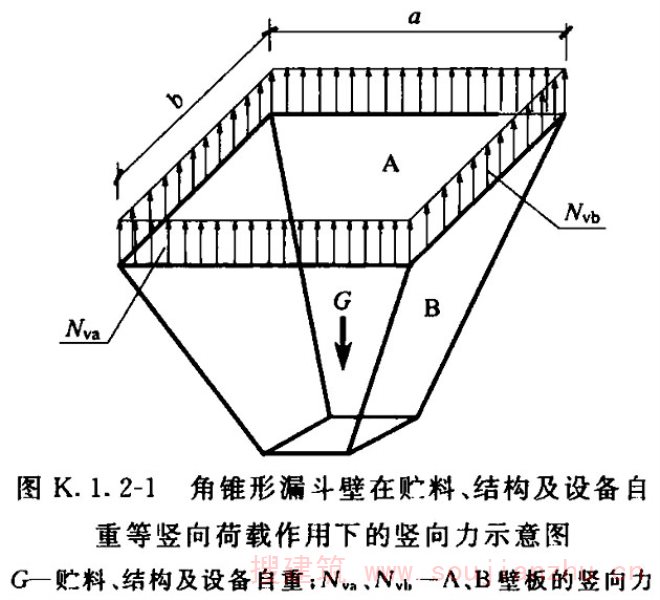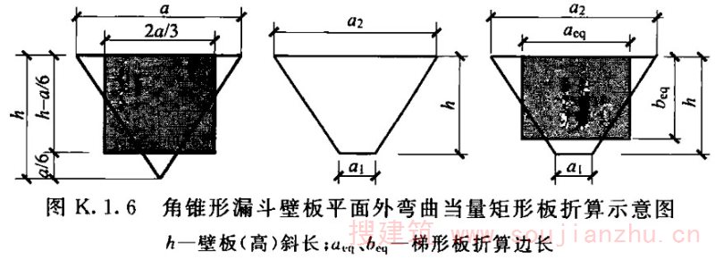 K.1.9 角锥形漏斗壁板按各种简化等代板转换后,可釆用代换板的静力计算确定漏斗壁板的应力,并以此验算壁板平面外弯曲的承载力。