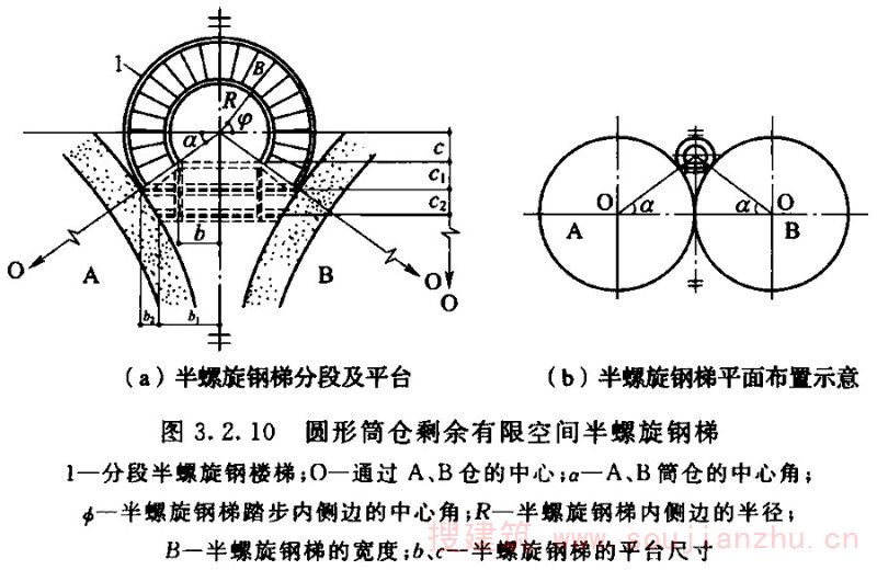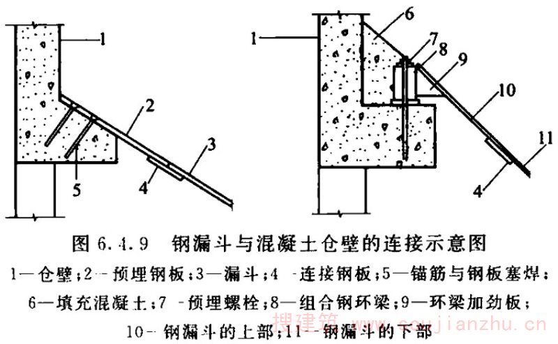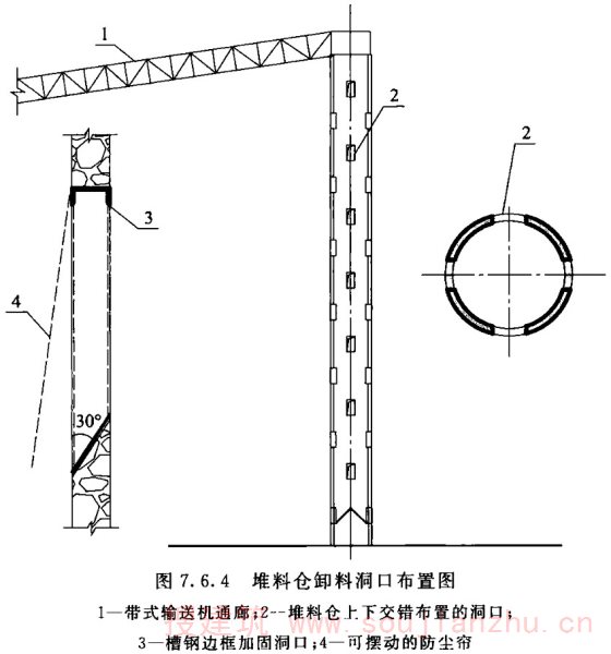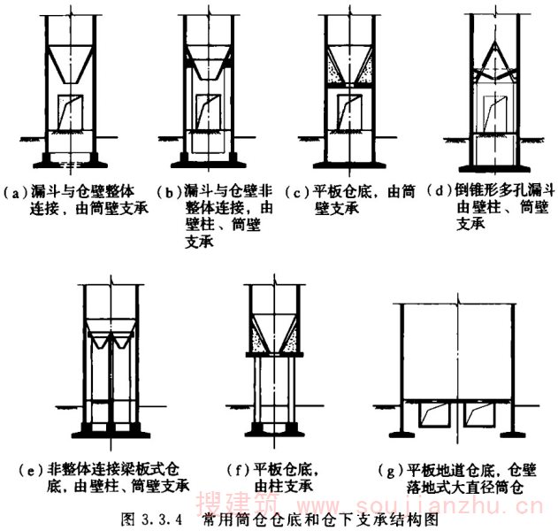 2.1.2 筒仓贮料仓壁顶面以上的建筑都可称为仓上建筑物,按各种不同的贮料工艺设计,所釆用的建筑结构形式也各不相同。