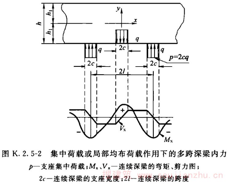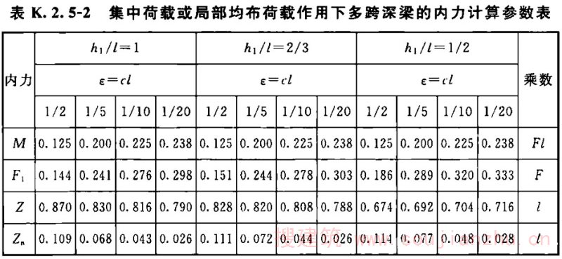 3 集中荷载或局部均布荷载作用下(图K.2.5-2),多跨深梁的内力计算参数应符合表K.2.5-2的规定。