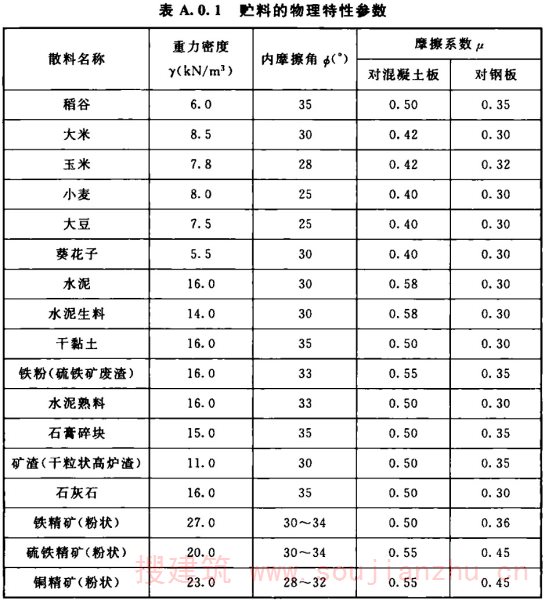 1.0.2 本标准适用于贮存散料及压缩空气调匀混合粉料且平面形状为圆形或矩形的现浇钢筋混凝土筒仓设计。不适用于贮存青饲料及纤维状散料和湿法搅拌物料的筒仓设计。