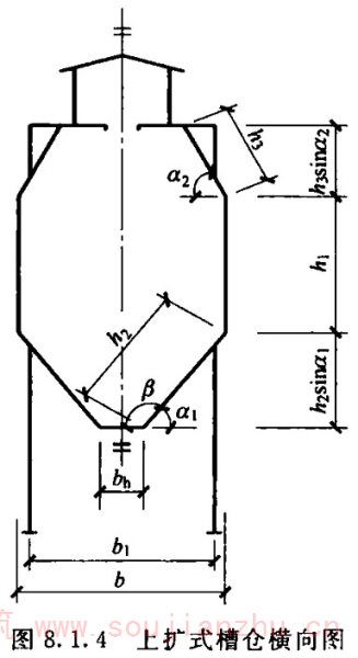 2.1.17 槽仓最早出现在苏联及德国文献中,在英美文献中对这种结构的称谓也不统一,结构专业通常称槽仓为trough bunker,工艺专业称槽仓为wedge-shaped hopper及slotted hopper。本标准釆用结构专业的英文用词。