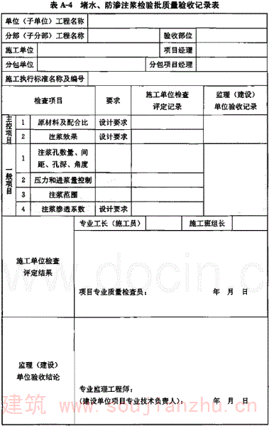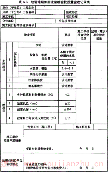 9.2.1 建筑工程双液注浆工程应按现行国家标准《建筑工程施工质量验收统一标准》GB 50300规定的程序进行施工质量验收,并按本规程附录A进行记录。