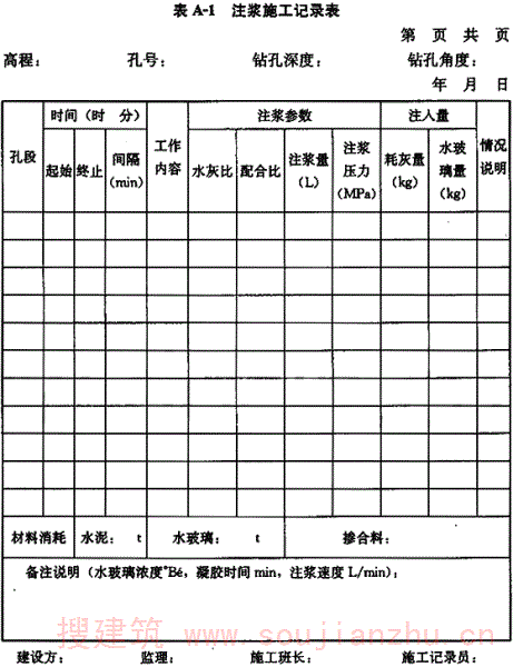 附录A 水泥—水玻璃双液注浆施工及验收表