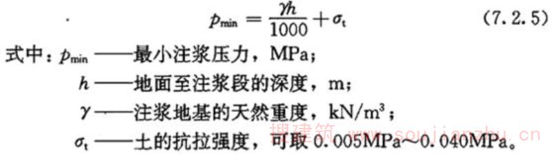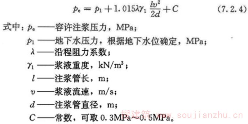 4 注浆压力宜通过现场试验确定。对于松散地层,注浆压力宜为0.3MPa~1.0MPa 对于淤泥质土和粉质黏土,注浆压力宜为0.2MPa~1.5MPa 对于中细砂层,注浆压力宜为0.6MPa~3.0MPa。