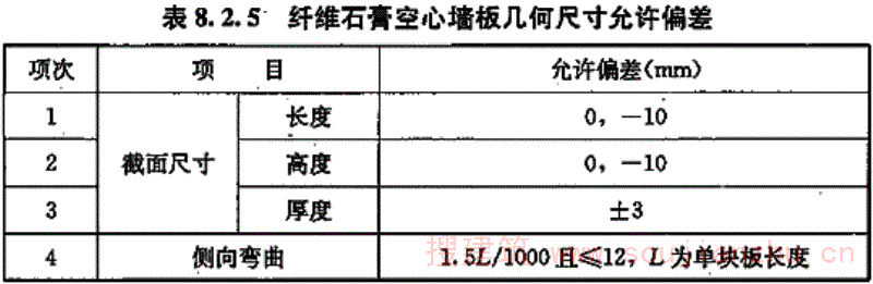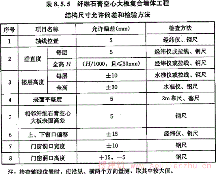 8.5.5 纤维石膏空心大板复合墙体工程结构尺寸允许偏差和检验方法应符合表8.5.5的规定: