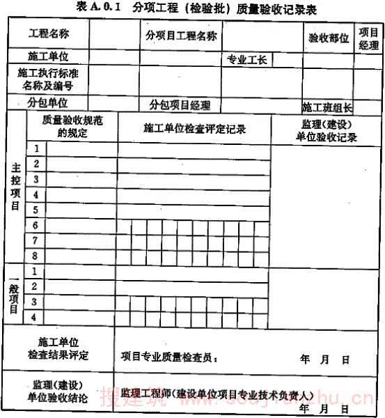 附录A 分项工程(检验批)质量验收记录表