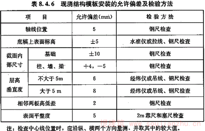 8.4.6 现浇结构模板安装的允许偏差及检验方法应符合表8.4.6的规定。