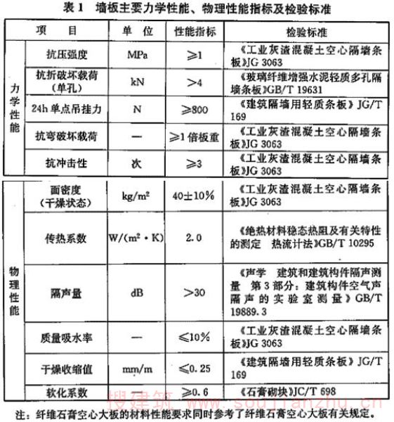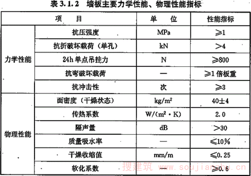 3.1.2 墙板主要力学性能、物理性能指标应满足表1的要求。