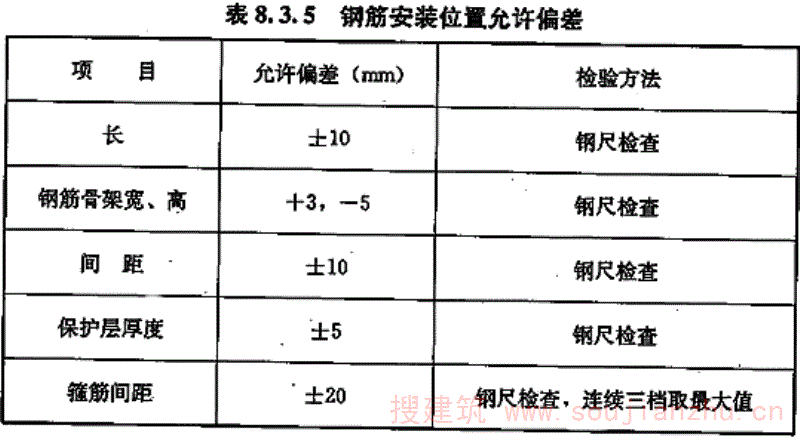 8.3.5 钢筋安装位置允许偏差应符合表8.3.5的规定: