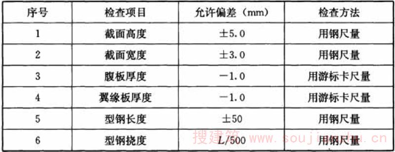 表6.2.3 H型钢允许偏差