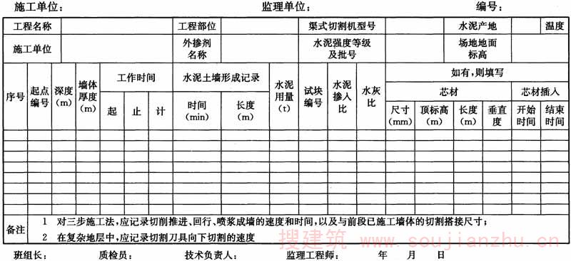 附录B 渠式切割水泥土连续墙施工记录表