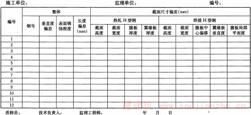 附录C H型钢检查记录表