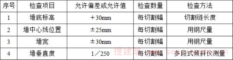 6.2.5 渠式切割水泥土连续墙成墙质量检验标准应符合表6.2.5的规定。