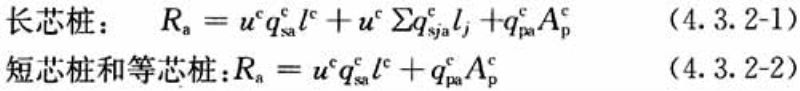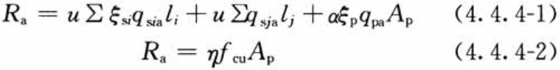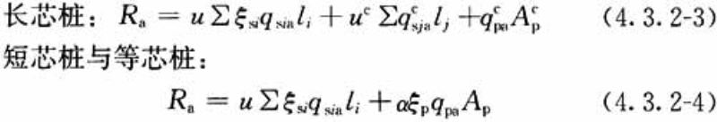 4.4.4 劲性复合桩单桩竖向抗压承载力特征值应根据单桩载荷试验确定,初步设计时,散刚复合桩、柔刚复合桩和三元复合桩可按本规程第4.3.2条规定估算,散柔复合桩可按下列公式估算,并应取计算结果的小值: