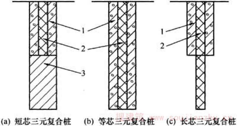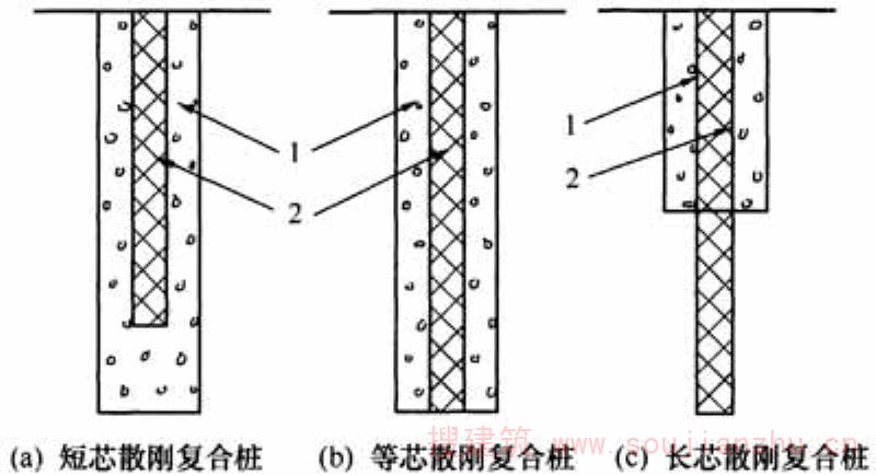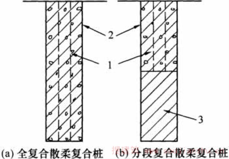 散体桩、柔性桩和刚性桩复合的桩。