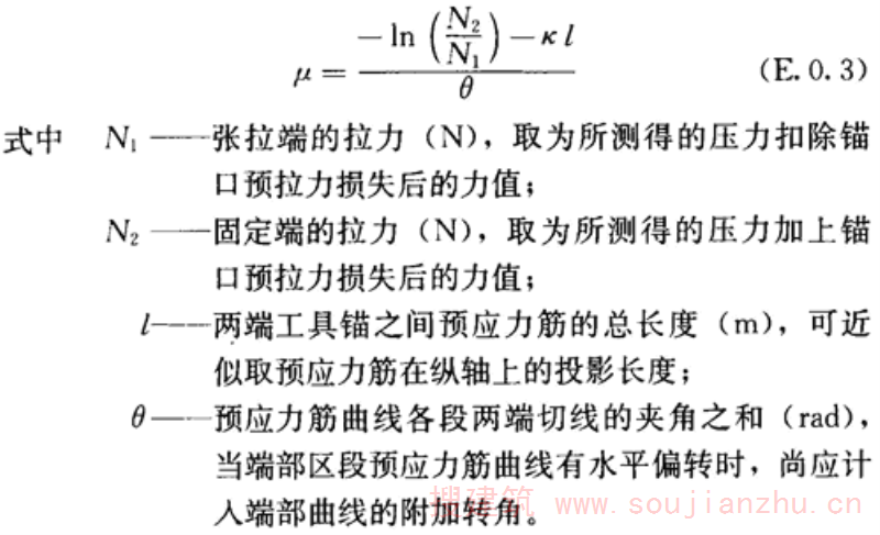 2 各级张拉力下相应计算摩擦系数μ,可按下式确定: